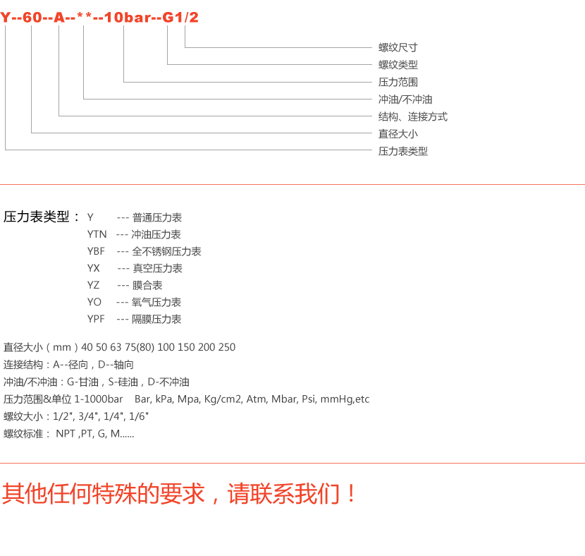 普通(带支架/带法兰)压力表